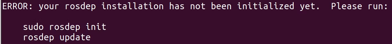 - 만약 아래와 같은 오류가 뜬다면 오류에 작성된대로 sudo rosdep init 후, rosdep update를 진행하여주자.